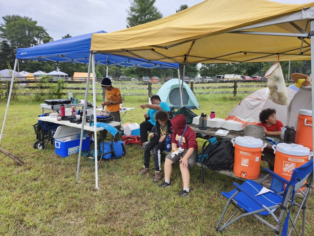This month, we went to the district’s Jurassic Adventure Camporee at Camp Highroad in Middleburg, VA! Our troop participated in a variety of patrol-based competitions, working on lashings, fire building, navigation, first aid, archery and more.